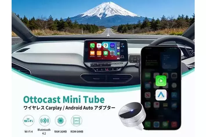 乗るたびにケーブル不要!iPhoneもAndroidも“置くだけ”でつながる――ワイヤレスCarPlay/Android Autoアダプター「Ottocast Mini Tube」新登場