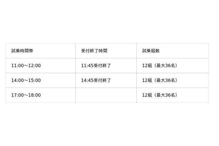 各開催日における、試乗可能組数があるため、同時に試乗の事前予約の受付も開始いたします。