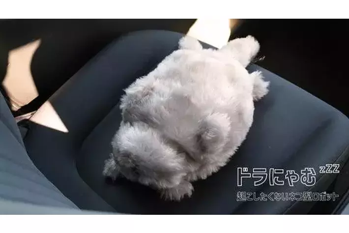 「ドラにゃむ」は、通常時はグーグーと寝息を立て、リスクのある運転を感知すると、目を覚まして鳴き声を発する“起こしたくない猫型ロボット”です。