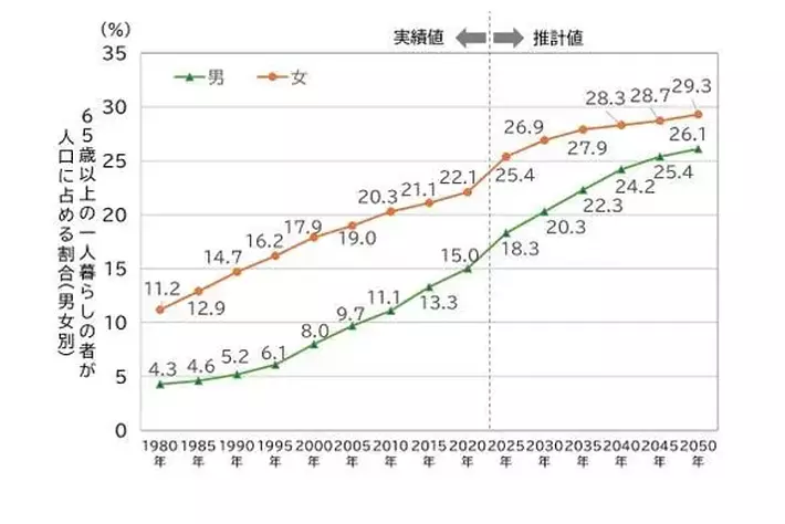 【参考】65歳以上の一人暮らしの者の動向(内閣府 令和7年版高齢社会白書データより作成)