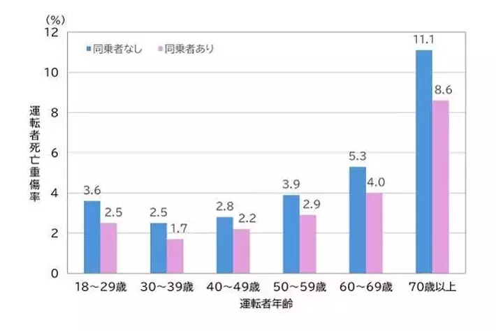 【参考】同乗者有無別の運転者死亡重傷率(ITARDA INFORMATION No.93のデータより作成)