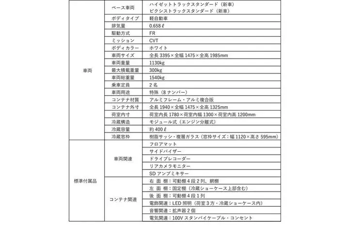 『いちばキャビン』では冷蔵装置に株式会社デンソーの小型モバイル冷凍機『D-mobico』(※1)を採用し、ポータブルバッテリーを動力源とすることで、アイドリングを不要としました。