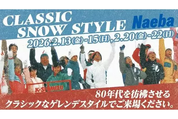 苗場スキー場(所在地:新潟県南魚沼郡湯沢町三国 支配人:大塚 裕司)は、2026年2月13日(金)より期間限定で1980年代をテーマにした企画「CLASSIC SNOW STYLE Naeba」を実施いたします。