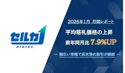 当社データによると、2026年1月のセルカ平均落札価格は前年同月比で7.9%上昇しており、中古車市場全体の価格水準の高止まり傾向を反映した結果となっています。