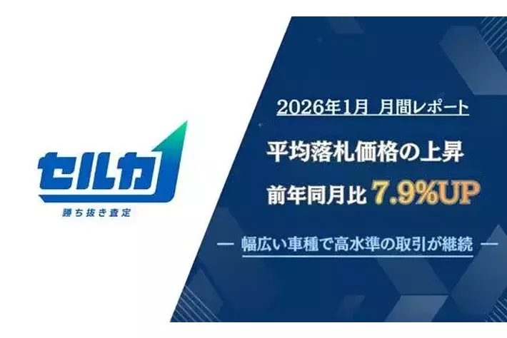が運営する、中古車CtoBオークションサービス 勝ち抜き査定「セルカ」において、2026年1月の平均落札価格は2,332,449円となり、前年同月(2,161,427円)と比較して7.9%上昇しました。