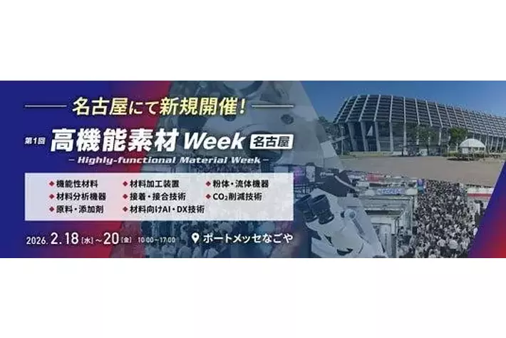 RX Japan合同会社(本社:東京都中央区、代表執行役員社長:田中岳志)は、2026年2月18日(水) - 20日(金)の期間、ポートメッセなごやにて 第1回 高機能素材Week [名古屋] を開催します。