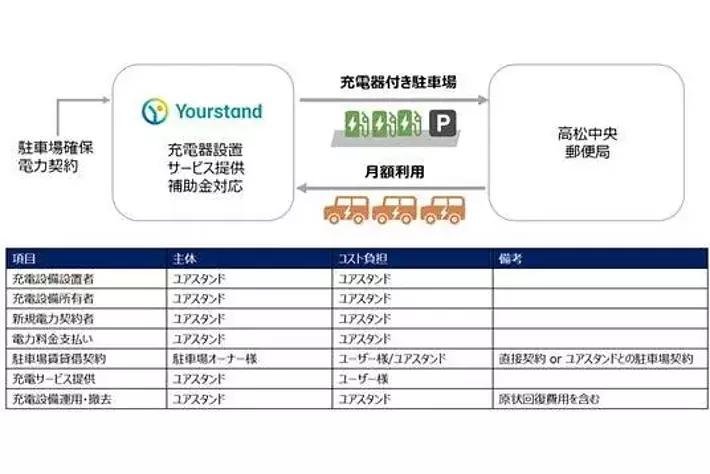ユアスタンド、高松中央郵便局の配送用EV向けに「充電器付き駐車場サービス」を1月から提供開始