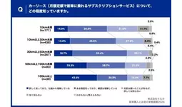 100km以上の層では「支払い総額が購入より高くなりそうだから」と「自分の資産にならないから」がともに54.5%で並び、コスト面・資産面の両面でハードルを感じている実態が明らかになりました。