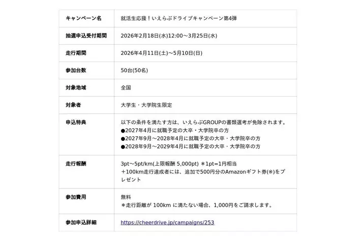 ■「就活生応援!いえらぶドライブキャンペーン 第4弾」概要