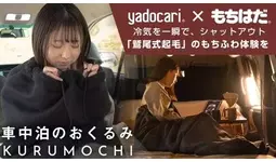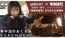 車中泊ブランド「yadocari」は、1970年誕生の特許製法「鷲尾式起毛」を持つワシオ株式会社のブランド「もちはだ」とコラボレーションし、車中泊専用の防寒・リラックスギア『KURUMOCHI(くるもち)』を発売いたします。 従来の寝袋やブランケットでは解消しきれなかった「寝る前のスマホ操作や食事中の寒さ」と「就寝時の冷気侵入」を、独自の筒状構造と圧倒的な保温力で解決。日本の職人技術を詰め込んだ、兵庫県産・完全国内生産の逸品です。