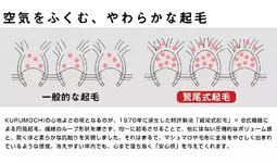 一般の起毛とは異なり、ループ形状を壊さず起毛させることで、圧倒的なボリューム感と魔法瓶のような保温力を実現。