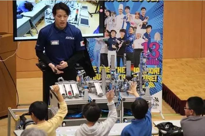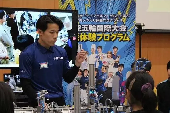 このプログラムは、小中学生を対象に、技能五輪国際大会に出場した選手が実際に技能を披露し、体験してもらうもので、2028年に21年ぶりに日本(愛知県)で行われる技能五輪国際大会を盛り上げるために12月より愛知県各地で実施。2月22日にアイシン学園(愛知県知立市)で行われた「技能体験プログラム」に、アイシンとトヨタ紡織から技能国際五輪出場者が参加しました。