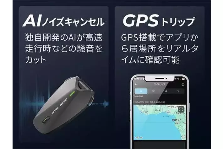 Reso独自開発のAIノイズキャンセルが高速走行時などの騒音をカット。アクションカメラとの音声連携も可能です。GPSトリップレコード機能により走行を開始すると位置情報を自動的に記録。GPSとジャイロセンサーによるSOS発信機能も搭載しています。