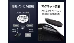 他社インカムとの接続も可能/本体はマグネットで簡単脱着