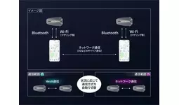 メッシュ通信の通信範囲内はメッシュで接続し、通信範囲を超えると自動的にネットワーク通信へ切り替わる通信方法。状況に応じて通信方法をシームレスに切り替えることで、常に安定した会話を楽しめます。