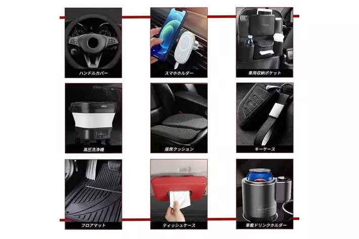 ボディカバー以外にも、愛車を守るためのプロテクションフィルムから、車内を快適にする座席クッション、スマートフォンホルダー、ハンドルカバー、キーケース、フロアマット、さらに車両のコンディションを維持する洗車・メンテナンス用品まで、カーライフをトータルでサポートする幅広い商品を展開しています。
