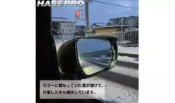 車種専用カットなのでドアミラーに合わせて施工できるので、雪が溶けてドアミラーに付着した水滴も撥水していますね!