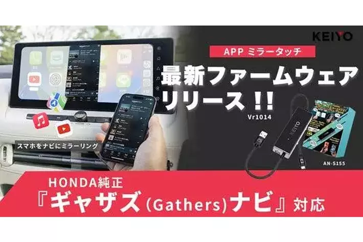 車載機器メーカーの株式会社慶洋エンジニアリング(本社:東京都港区)は、スマートフォン画面を車載モニターで操作可能にする人気製品「APPミラータッチカーアダプター AN-S155」の最新ファームウェア(FW)をリリースいたします。 本アップデートにより、これまで不適合としていたホンダ純正「ギャザズ(Gathers)ナビ(有線Apple CarPlay対応モデル)」への完全対応を実現。ホンダ車ユーザーの皆様に、ストレスフリーな車内エンターテインメント環境を提供いたします。