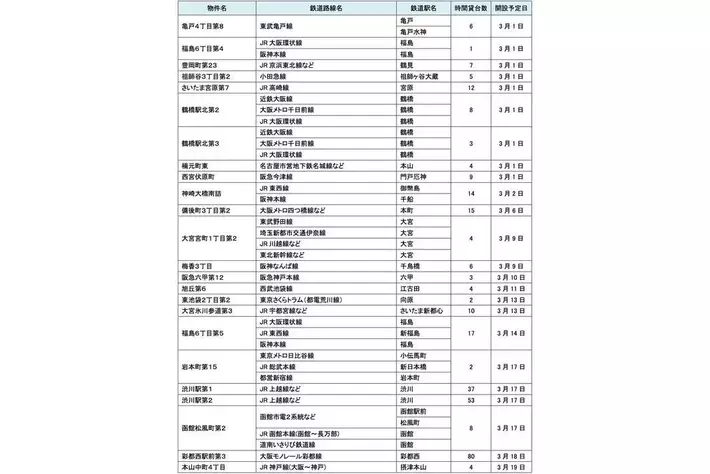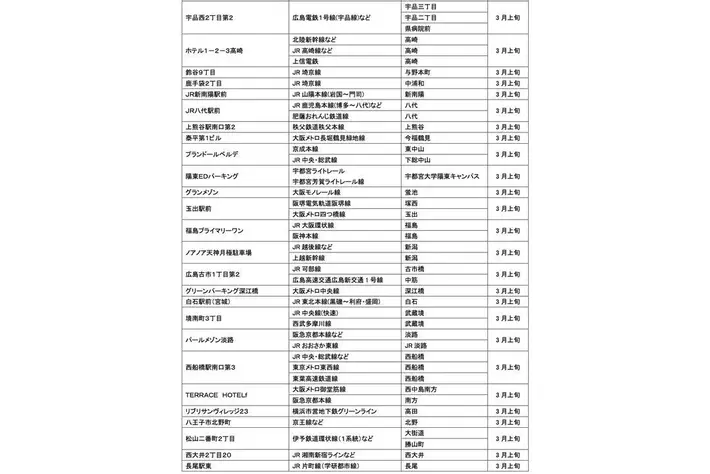 3月にオープンおよびオープン予定の「パーク&ライド」に適した駐車場は31件、「レール&カーシェア」に適したステーションは117件です。