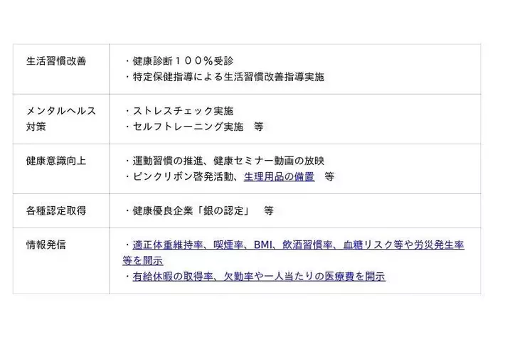 当社では、人生100年時代を見据えて、健康を保ちいきいきとした生活を目指し、以下の取組みを行っています。