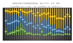 業務後自動点呼機器販売開始後、過去2年間出荷数比較