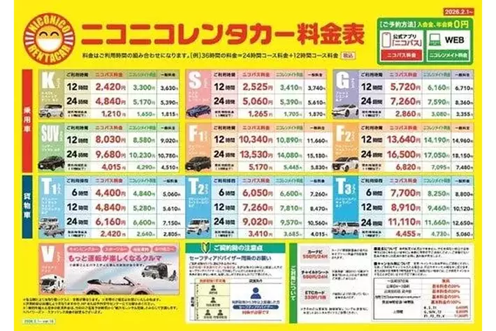 ニコニコレンタカー郡山図景店では、12時間乗り放題2,420円からご利用いただけます。ENEOSサービスステーション併設店舗ならではの徹底した点検と清掃で、お客様の快適なドライブをお約束します。ガソリンスタンドでの貸し渡しですので、返却時の給油もスムーズです!