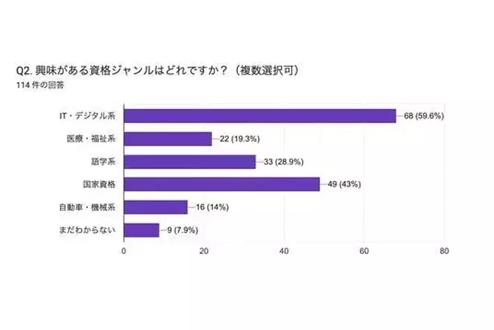 関心の高い資格ジャンルはIT・デジタル系を筆頭に「汎用的に使えるか」という基準で選ばれており、若年層がキャリアの選択肢を広く保ちたいという意識が反映されています。国家資格には総じて好意的な印象を持ちながらも、「難しそう」というイメージが心理的ハードルとなり、憧れが進路選択へ結びつきにくい実態があります。