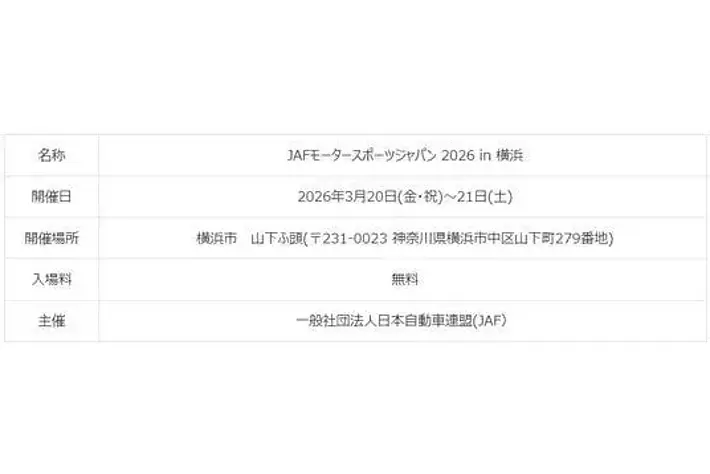 関連サイト:JAFモータースポーツジャパン 2026 in 横浜