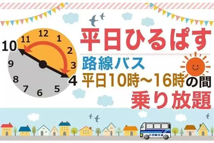 宮崎交通運行の路線バスで、平日10時~16時の間のみ何度でも乗り降りできる乗車券