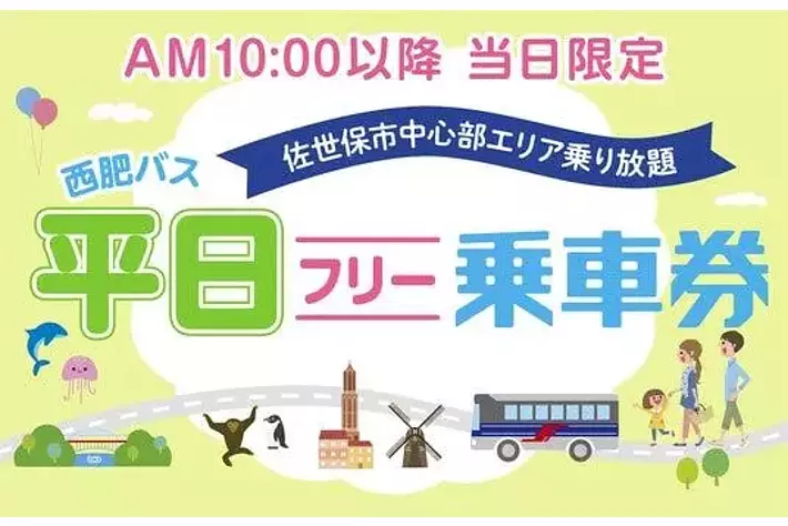 佐世保市内中心部エリアを運行する西肥自動車の一般路線バスに、平日10時以降に限り何度でも乗り降りできる乗車券