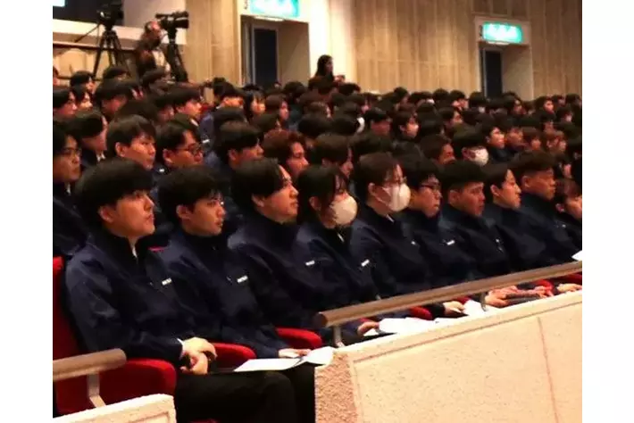 本日、アイシン安城地区にて入社式が行われ、当社取締役社長の吉田 守孝から新入社員へ、歓迎と激励のメッセージが送られました。