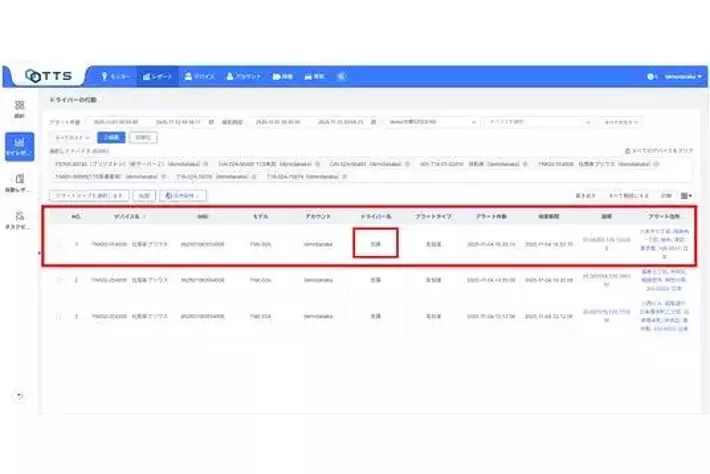 「TTSプラットフォーム画面」車両・ドライバー情報の一元管理