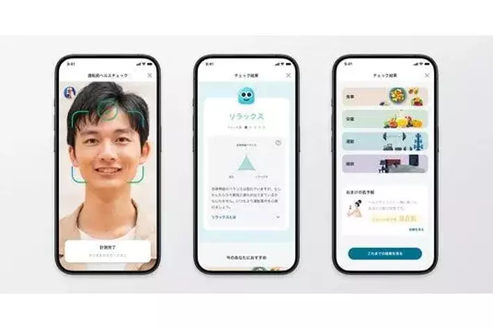スマホカメラで顔を撮影するだけで、顔色や脈波から「活力度」や「自律神経バランス」などを解析し、「今日の体調」を可視化します。