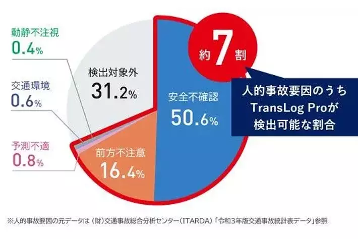 TransLog Proは人的事故要因の約7割にあたる事故要因をAIで検出します。