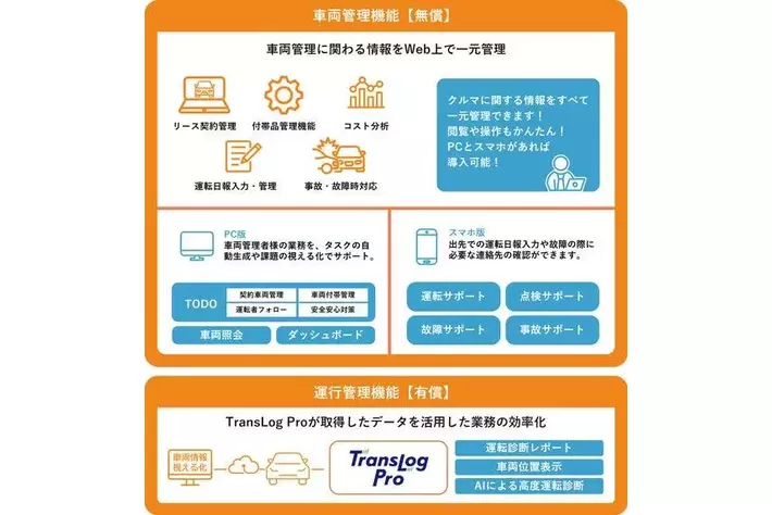 法人のお客様の「車両事故のリスク」と「車両管理」のお困りごとに、AIを活用した「TransLog Pro」がお応えします
