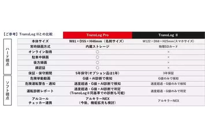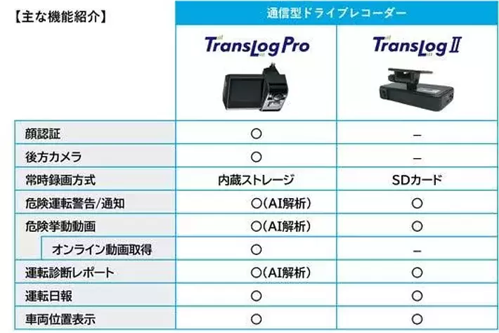 トヨタのテレマティクス通信型ドライブレコーダーは、TransLog Pro とTransLogIIの2機種をラインナップしています。