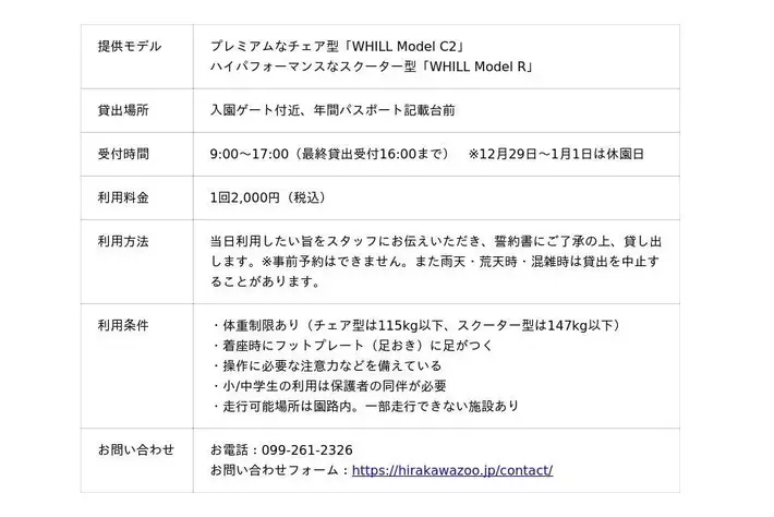 ◼️平川動物公園 WHILLモビリティサービス 概要