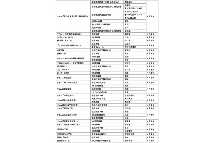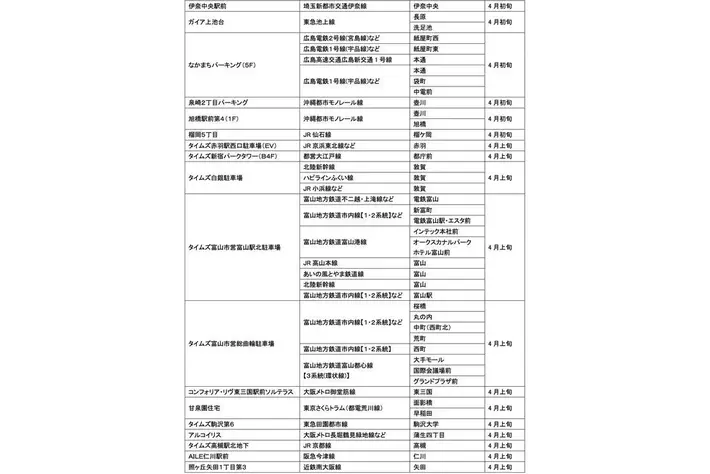 パーク24株式会社(本社:東京都品川区、社長:西川光一)は、温室効果ガスの排出量削減につながる移動法「パーク&ライド」および「レール&カーシェア」が可能なタイムズパーキングおよびタイムズカーステーションの2026年4月におけるオープン予定をお知らせいたします。