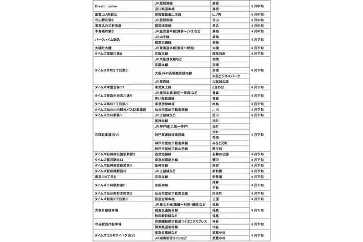 4月にオープンおよびオープン予定の「パーク&ライド」に適した駐車場は32件、「レール&カーシェア」に適したステーションは166件です。
