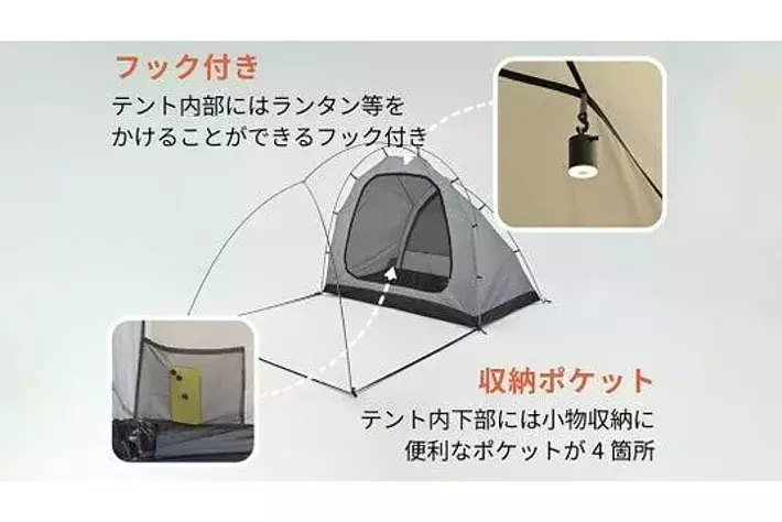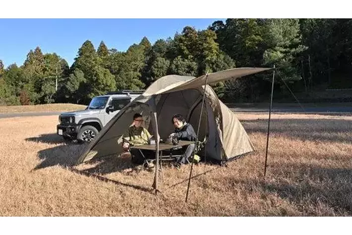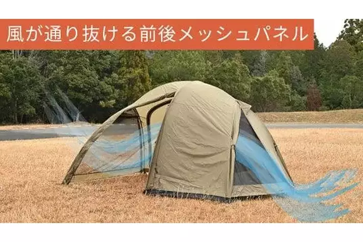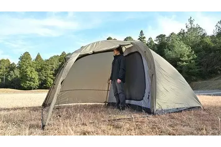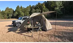 本製品は、バイクキャンプで磨き上げてきた軽量・コンパクト設計と設営のしやすさをそのままに、ジムニーなど積載量の限られた車でのキャンプでも快適に使える高天井と居住性を追求したドーム型2ルームテントです。