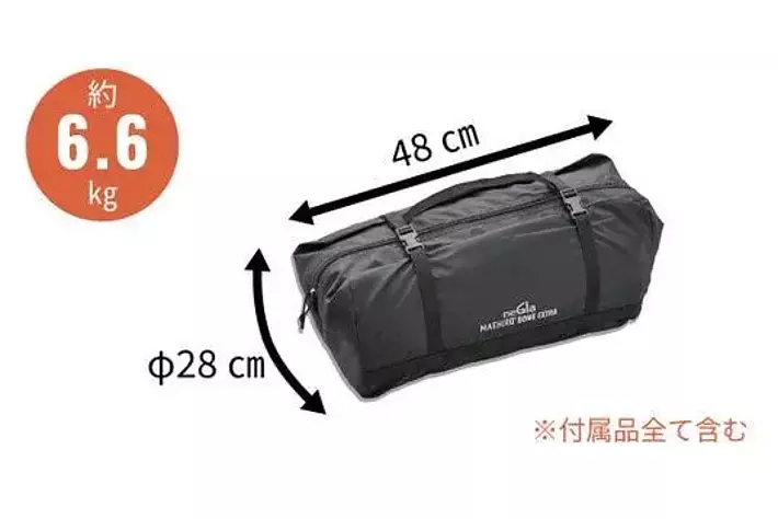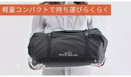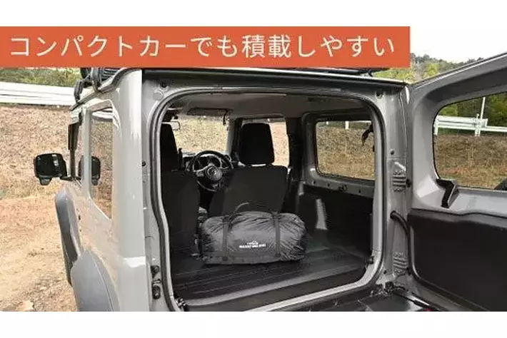 「車に積む際も場所を取らない」というバイク用テント譲りのDNAを継承。荷物が多くなりがちなオートキャンプにおいて、このコンパクトさは大きなアドバンテージとなります。