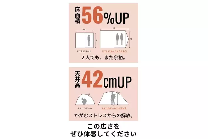 こうした背景から一昨年にMAEHIRODOME DUO(マエヒロドーム デュオ)を発売。しかし実際の使用シーンを追う中で見えてきたのは、「デュオ向け」として設計したモデルが、結果的にはソロでゆったり使われるケースが多いという現実でした。
