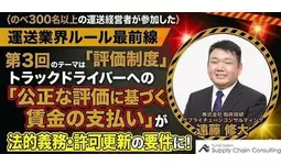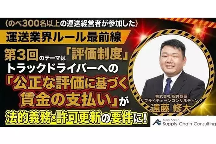 2026年4月10日 (金)株式会社船井総研サプライチェーンコンサルティング(本社:東京都中央区、代表:橋本直行、以下「船井総研SC」)のコンサルタントが「トラック運送業の評価制度」にテーマを絞ってお話しします。