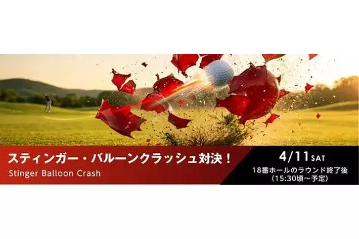 「東建ホームメイトカップ2026」決勝ラウンド初日の4月11日(土)、18番ホールのラウンド終了後(15:30頃~予定)に「スティンガー・バルーンクラッシュ対決」を開催します。プロゴルファーたちが100ヤード先に設置された色鮮やかな風船を、地を這うような鋭い弾道「スティンガーショット」で狙い打ちます。プロの技術とパワーが火花を散らす、手に汗握るエキシビジョンです。