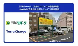 電気自動車(EV)向け充電サービス「Terra Charge(テラチャージ)」を展開するTerra Charge 株式会社(本社:東京都港区、代表取締役社長:徳重徹、以下、当社)は、三井不動産リアルティ株式会社(本社:東京都千代田区、代表取締役社長:児玉光博)が展開する「三井のリパーク」各駐車場への、EV(電気自動車)向け6kW出力の普通充電器が設置し、サービスを開始いたしました。