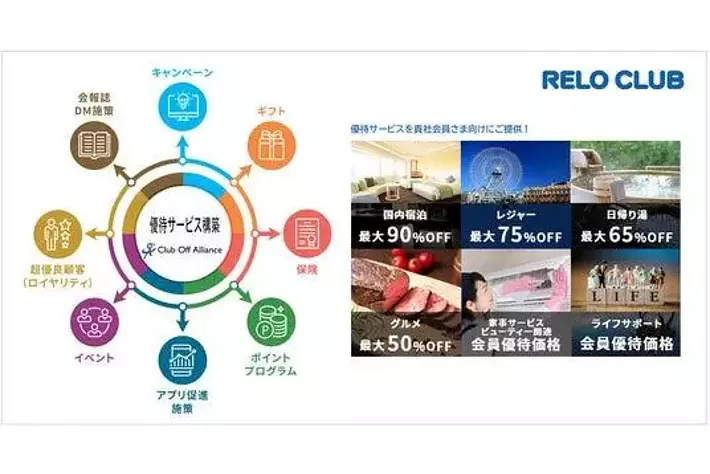 リロクラブは、1993年に「福利厚生倶楽部」のサービスを開始して以来、“中小企業にも大企業並みの福利厚生を!” をモットーに世界中で働く人々のくらしを福利厚生サービスを通じて豊かにしてきました。企業の規模にかかわらず、コスト・パフォーマンスの高いさまざまなサービスを全国地域格差なく25,800社、会員数1,340万人*5 に提供し、高い従業員満足度を得ている福利厚生サービスのトップブランドです。リロクラブのCRM事業は「クラブオフ(Club Off Alliance)」をはじめ、「福利厚生倶楽部」で培ってきた長年のノウハウや会員基盤を活かし、企業と顧客をつなぐ様々なサービスを展開しています。これらは、企業が優良顧客との関係性を構築・強化するためのCRM支援サービスとして位置づけられており、多くの企業から支持されています。
