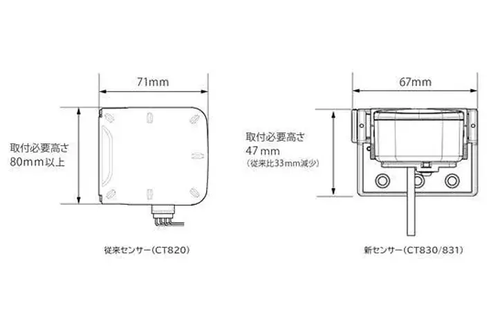 センサーの筐体を小型化し、取り付けに必要な高さを従来比で約33mm削減。
