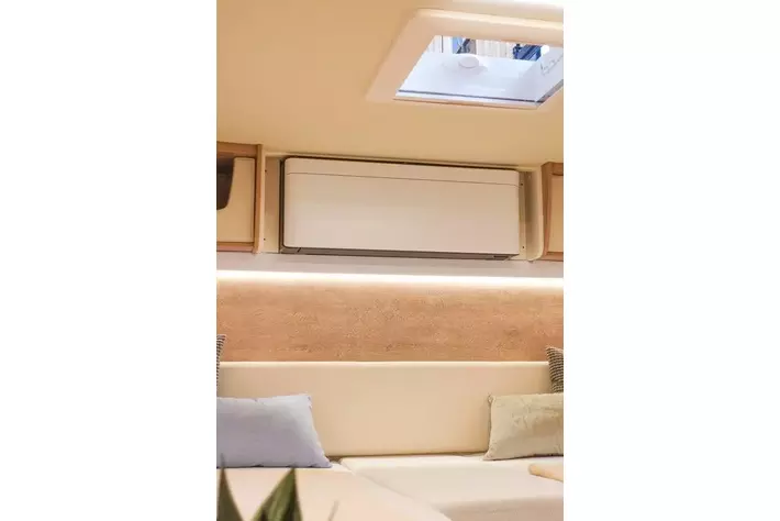 室内はモダンで機能的な設計となっており、ツインベッドを中心にゆとりある居住空間を実現。