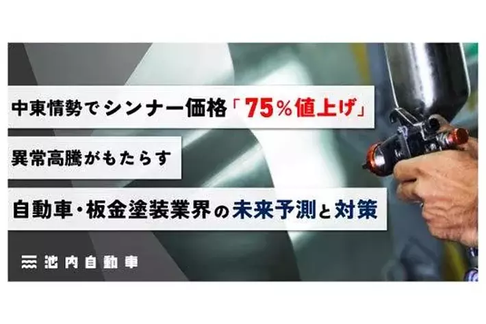 自動車の板金塗装事業を手掛ける株式会社イケウチ(本社:東京都千代田区、代表取締役社長:池内 美友、以下「当社」)は、昨今の中東情勢緊迫化による「塗料用シンナーの異常高騰」が、自動車業界および板金塗装業界に与える影響と今後の動向についての推察レポートを公開いたします。