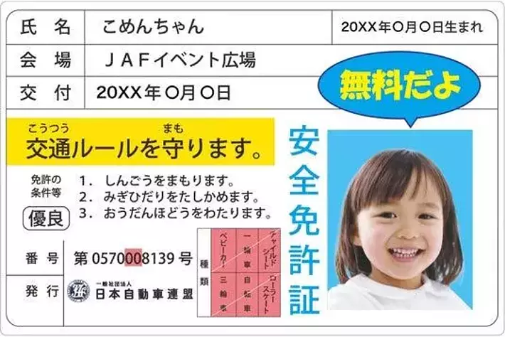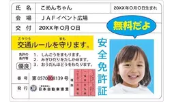 子ども安全免許証交通安全のクイズに挑戦すると免許証そっくりのカードを発行します。お子さまの顔写真入りで作成でき、イベントの記念としてもお楽しみいただけます!イベントオリジナルの「子ども安全免許証」を取得しましょう♪